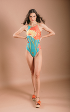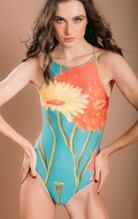 Vestido de Baño enterizo, con borlas bordadas a mano, de amarre en la parte posterior.