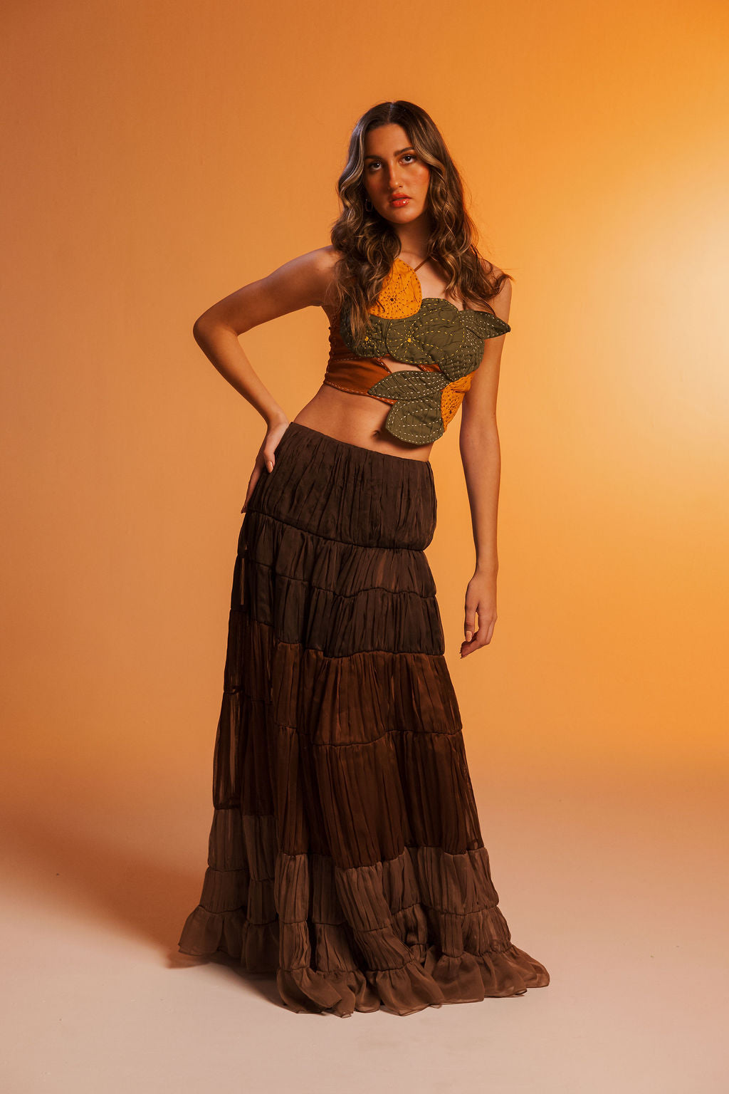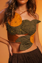 Una pieza artesanal y única. El Bon Crop Top está confeccionado con formas superpuestas en algodón, moldeadas a mano sobre maniquí para lograr una silueta escultórica y orgánica. Incluye bordados hechos a mano, espalda descubierta y delicados tirantes ajustables con terminaciones en mostacillas cerámicas. Ideal para looks sofisticados de verano.